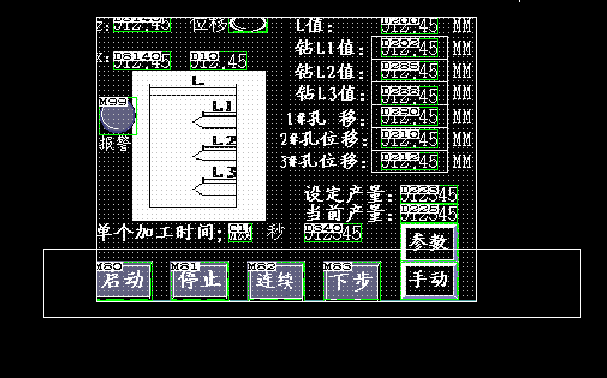 整個畫面我都編寫好了;最下面一排 {啟動.停止.連續.單步.手動.參數} 這幾個按鍵,為什么傳輸到觸摸屏里面去沒有顯示,如下圖