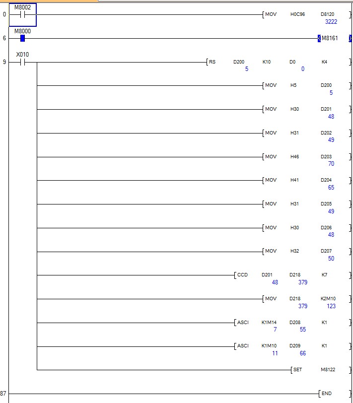 看下這個1N的485程序?qū)Σ唬琗10接通變頻器不動作。變頻器參數(shù)應(yīng)該是沒錯的,不知道哪里出了問題。我的變頻器三菱S500系列的 PLC FX1N大神們幫幫忙啊