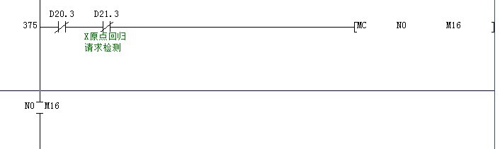2.使用主控指令的那一段程序,如果觸發條件不滿足的話(D20.3和D21.3常閉點不接通)在 MC N0 M16 到MCR N0之間的程序就會無法執行!