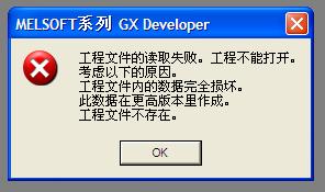 我用GX Developer按路徑根本找不到GX Works2  的程序,但是它們在一個總的文件下。如果把GX Works2  的程序打開方式選擇GX Developer打開,就會出現如圖對話框: