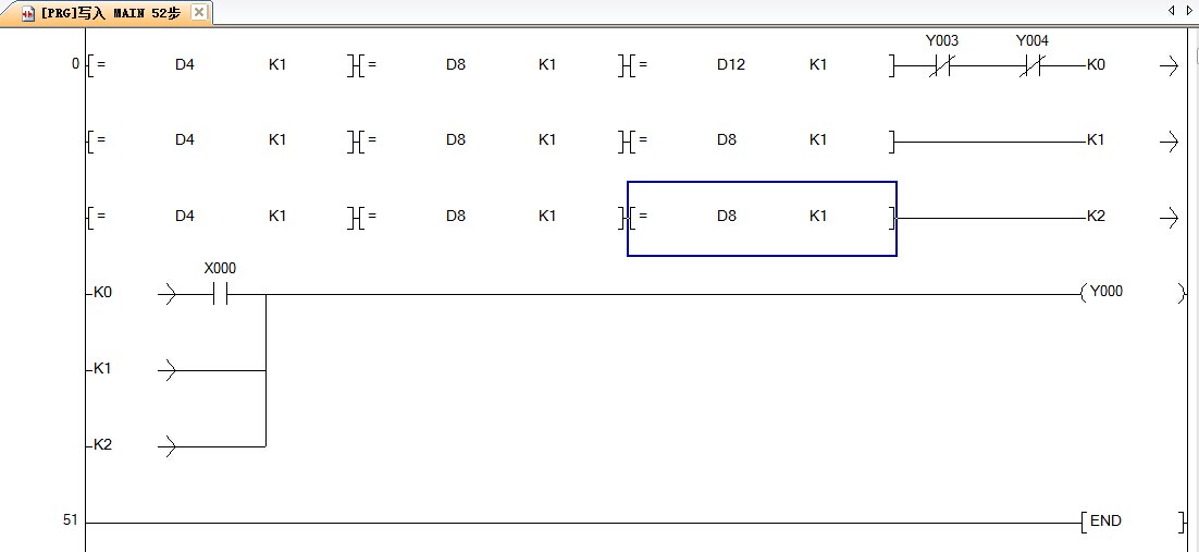 Y3 Y4 X0 ---|/|------|/|----||------------------(M0) M0 --[ ]----[ ]----[ ]---||----------(Y0) --[ ]----[ ]----[ ]-------| --[ ]----[ ]----[ ]-------| |