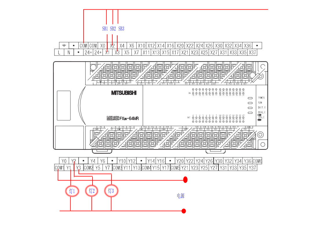 我看不懂PLC上的24V跟COM該怎麻跟我的按鈕互接怎麻跟燈號互接
