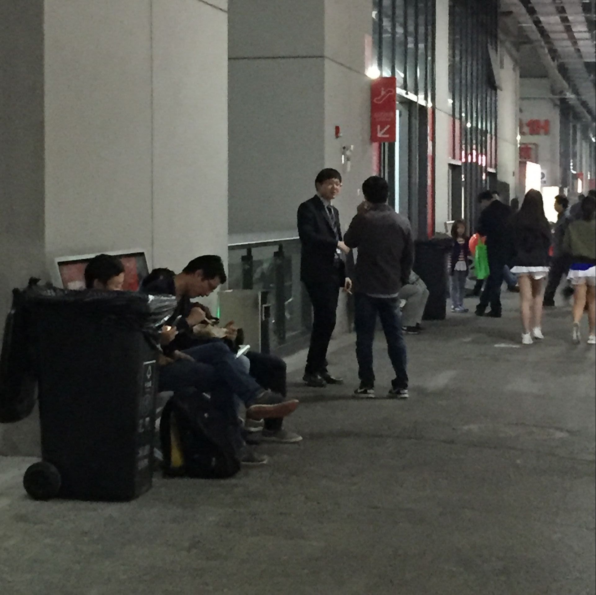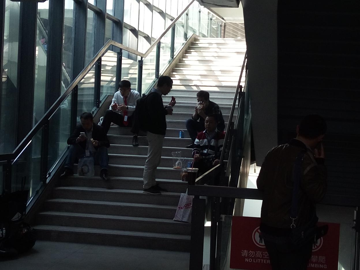 還有很多觀眾不辭勞苦而來,拎著滿滿的資料,只能在路邊就餐