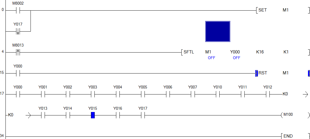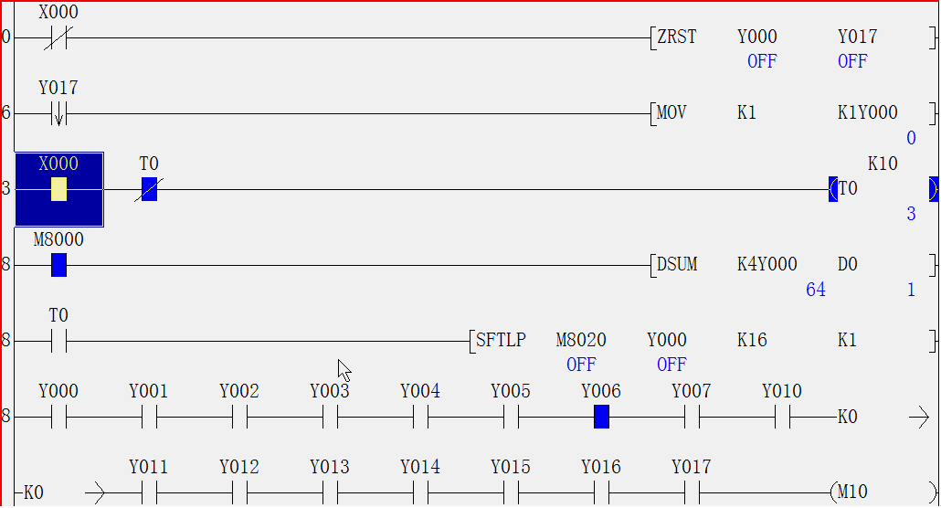 要求y0開一秒關一秒(不再開),然后y1開一秒關一秒(不再開)一直到第16個燈。應該用什么指令,