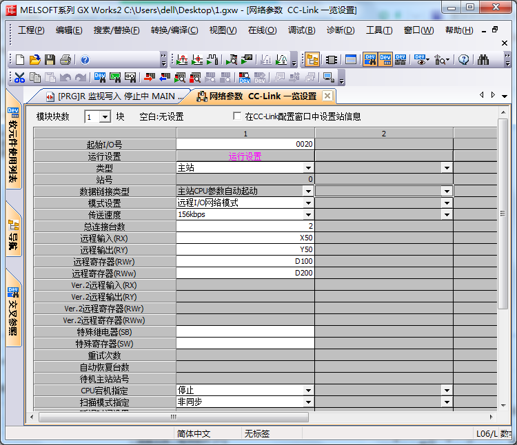 3、導航窗口選擇參數  網絡參數    CC-Link