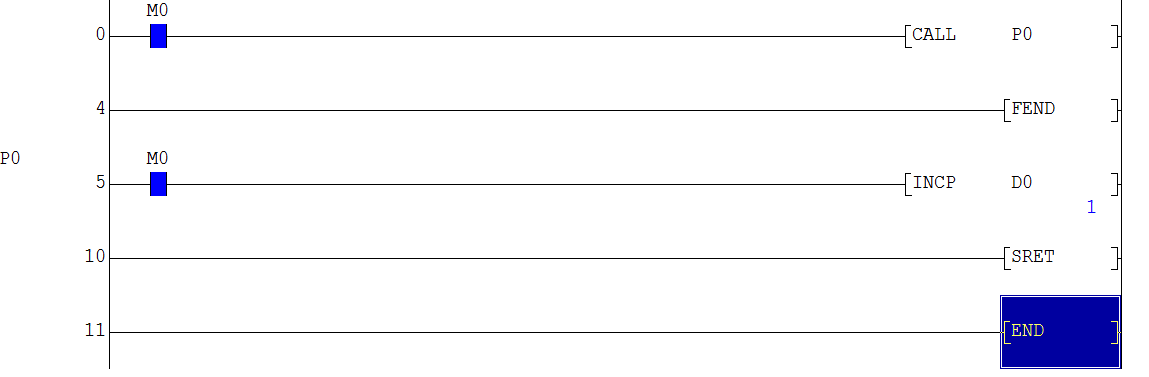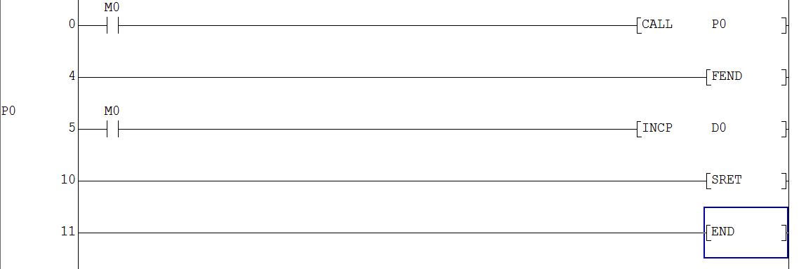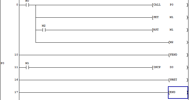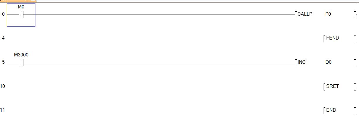 P0不執行,子程序里面的M0不OFF,P0再接通,M0就通,沒有OFF過程。