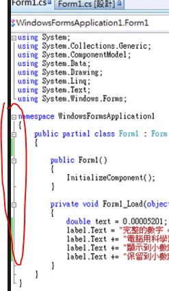 下圖紅色圈起處,是我提到的程序收摺點,程序收摺時會顯示"+",程序展開時會顯示"-"