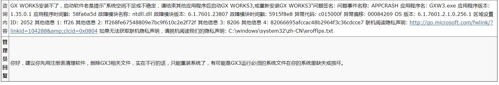 三菱GX WORKS3軟件安裝出錯,啟動老是出現“內存不足......重裝WORKS3”請問有人解決嗎?如何解?壓縮包沒問題