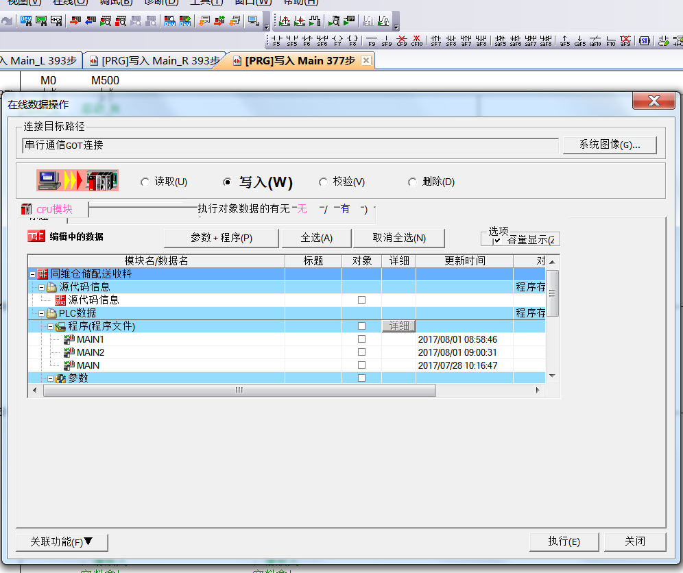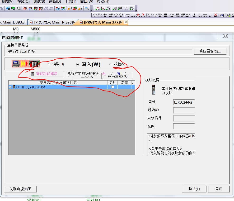 需要把通訊模塊參數寫入PLC,一時找不到窗口,疊加擋住了