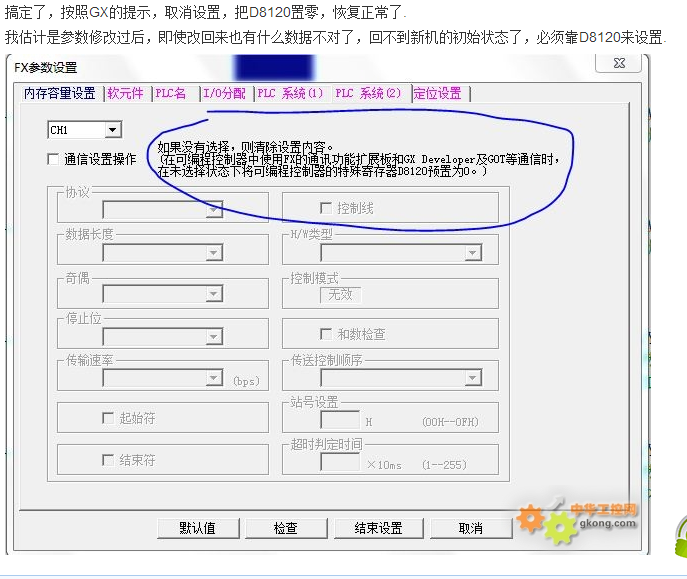 另外:我通過通訊模塊來實現(xiàn)與GX DEVELOPER的通信,用編程口來完成與組態(tài)王的通信,用這種方法可以實現(xiàn)想要的功能,但是我程序稍微多幾行在使用GX DEVELOPER監(jiān)控時就會卡,然后程序無響應(我感覺是因為波特率只能設置成9.6k的原因)。