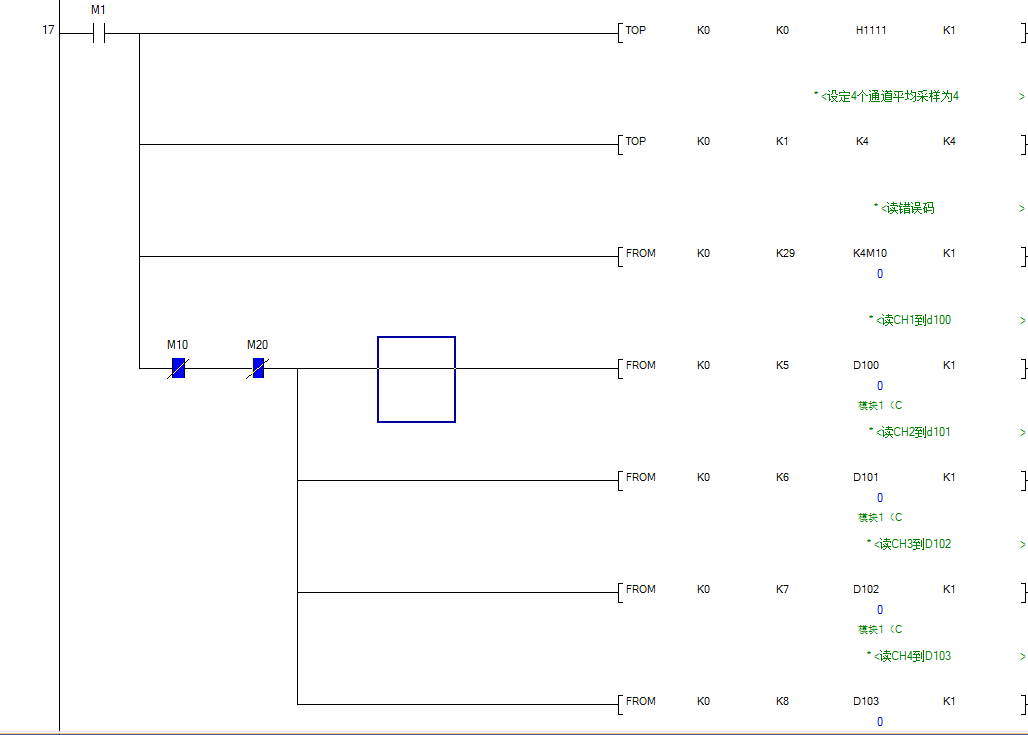 1、圖中程序看來是正確的,但不知道是否有其它指令對D100-D103有影響,D100-D103的數據只供讀取,不能賦值。