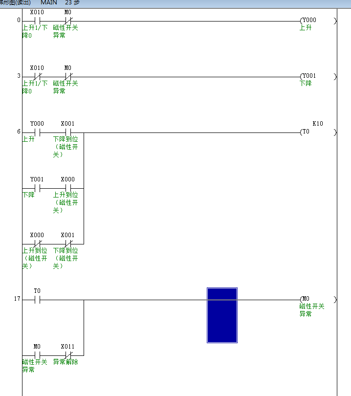 修改過之后是這樣的,打算用手動讓他運動至上位從而解除警報。報警的時候需要停止上升?如果這樣的話怎么解除報警呢?