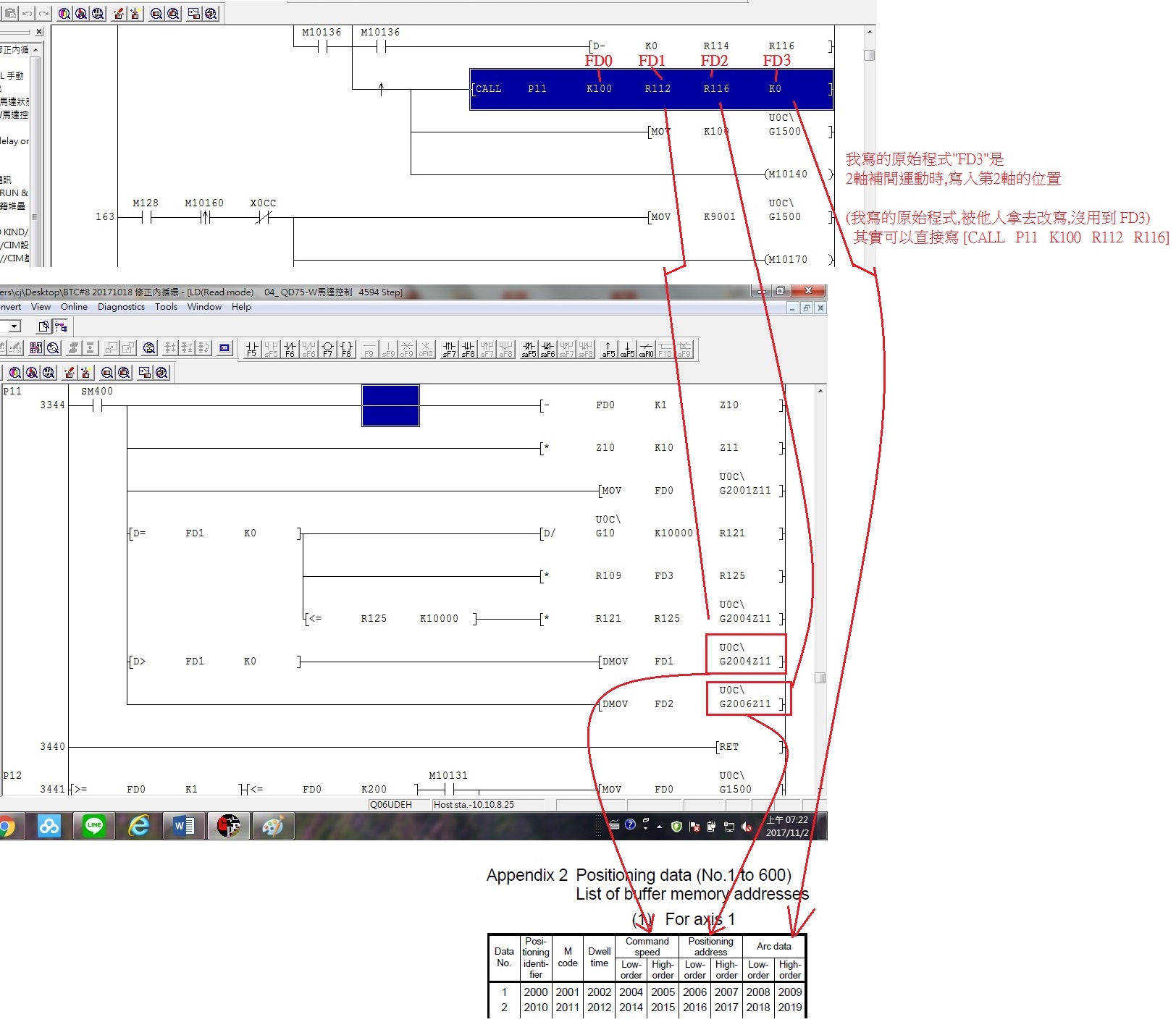 引用引用第3樓snails于2017-11-02 11:53發表的 :P11 P22兩個指針控制的東西不一樣吧。你看看你的P11里的K0(FD3)經過換算寫到U0C\G2004Z11里了,你找下你這個地址是控制什么的