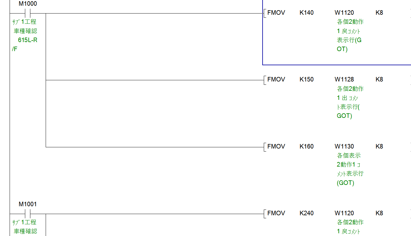 各位大神,現(xiàn)用三菱觸摸屏,注釋顯示用字地址顯示,原程序FMOV K140 W1120 K8,可正確顯示指定注釋組140-148.現(xiàn)追加一個(gè)頁面,追加程序 FMOV K1040 W11A0 K8  ,W11A0-W11A7八組注釋全顯示1040。和軟元件存儲(chǔ)器設(shè)定的數(shù)據(jù)有關(guān)嗎?