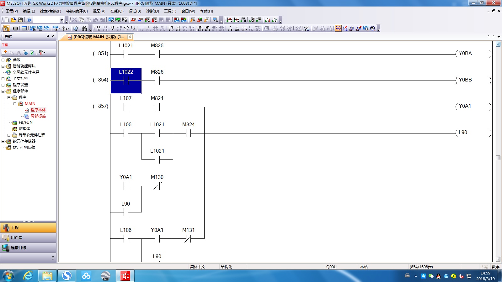 L是鎖存寄存器 上面的程序用法是標志一個狀態完成鎖存 上面程序是裝盒的話 應該是多少工位完成動作鎖存 然后條件滿足再輸出Y