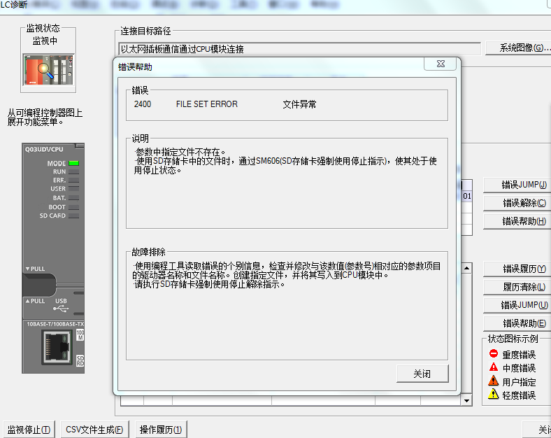 三菱的q03udvplc 錯(cuò)誤代碼2400 不知道怎么弄求幫助