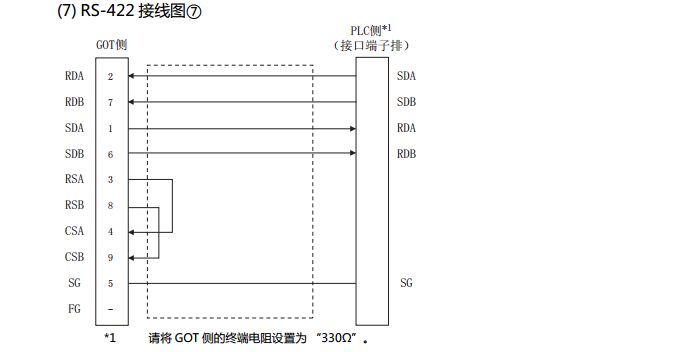 三菱觸摸屏你可以使用RS422的口,里面端子定義和接線如圖,接線完成后進(jìn)行觸摸屏內(nèi)部設(shè)置,通訊方式配置成RS-422/RS485就可以了,希望可以幫到您