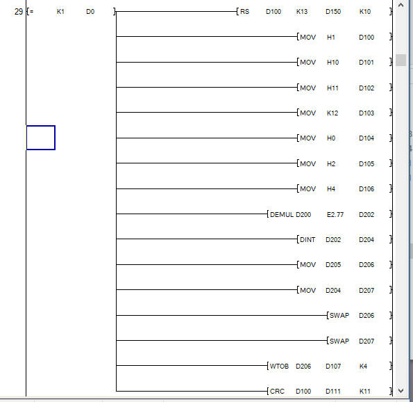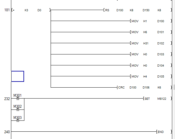 這是RS無協議通訊通訊,D100開始下面的是通訊對象的報文結構,看樣子程序應該不全,還有設置通訊參數的D8120,請求發送繼電器M8122,接受狀態M8123等。仔細閱讀下手冊,檢查下程序