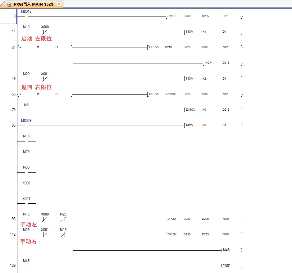 建議使用M8029和極限開關進行往返。如果是左右往返距離一樣,直接脈沖加方向控制簡單。