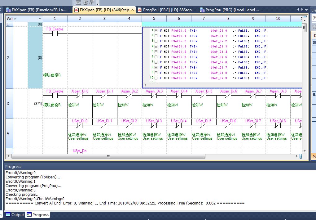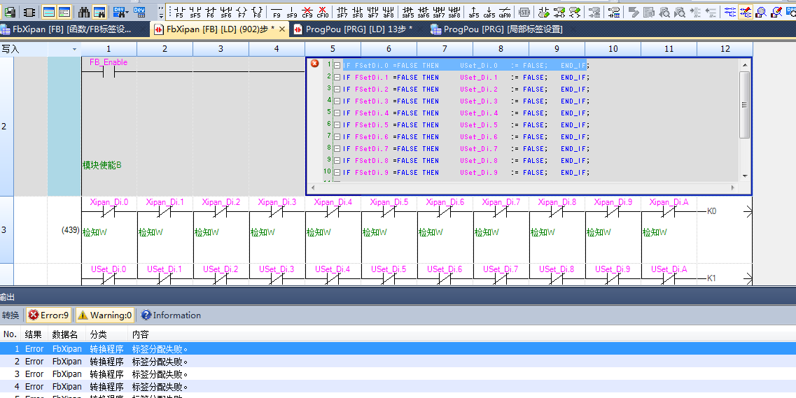 引用樓主吳工2014于2018-02-08 09:24發表的 求助三菱FX5U FB/FUN程序編譯出錯“標簽分配失敗”,謝謝! :