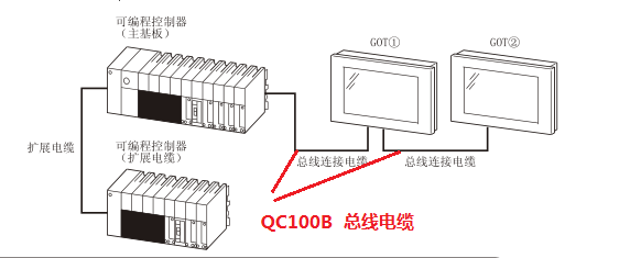 使用三菱QC100B電纜  連接Q系列PLC和GOT2500系列觸摸屏進(jìn)行通訊,