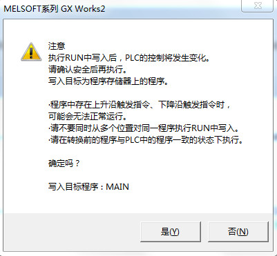 注意:執行RUN中寫入后,PLC的控制將發生變化…………。