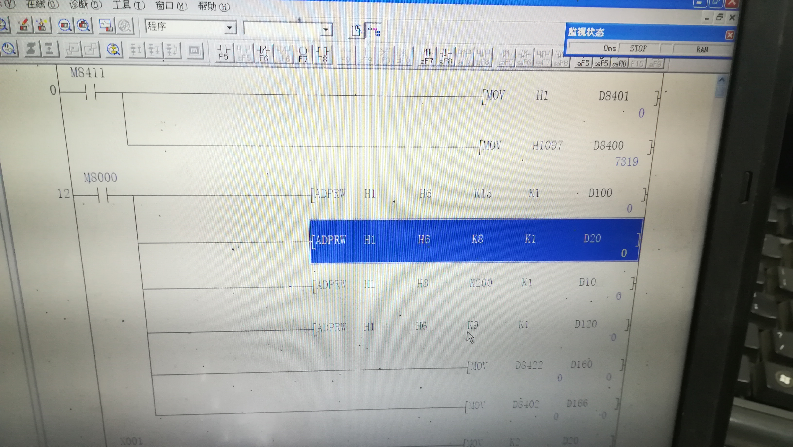 圖片上監控的D8400值怎么是7319,這個數據是不對的,bit10,11不能被使用,查下原因,再d8402的看下故障碼