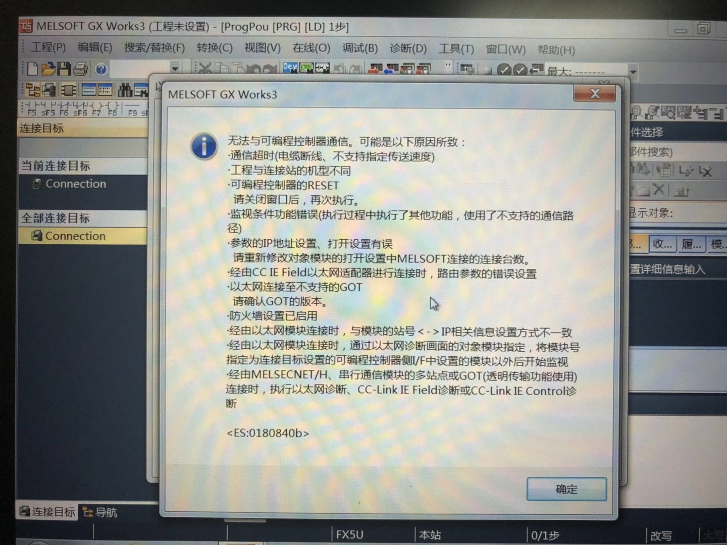 由于筆記本自身系統的問題,用不上GX Works3,所以我下了個虛擬機來運行,但是虛擬機運行的時候無法跟FX5U的PLC通訊。