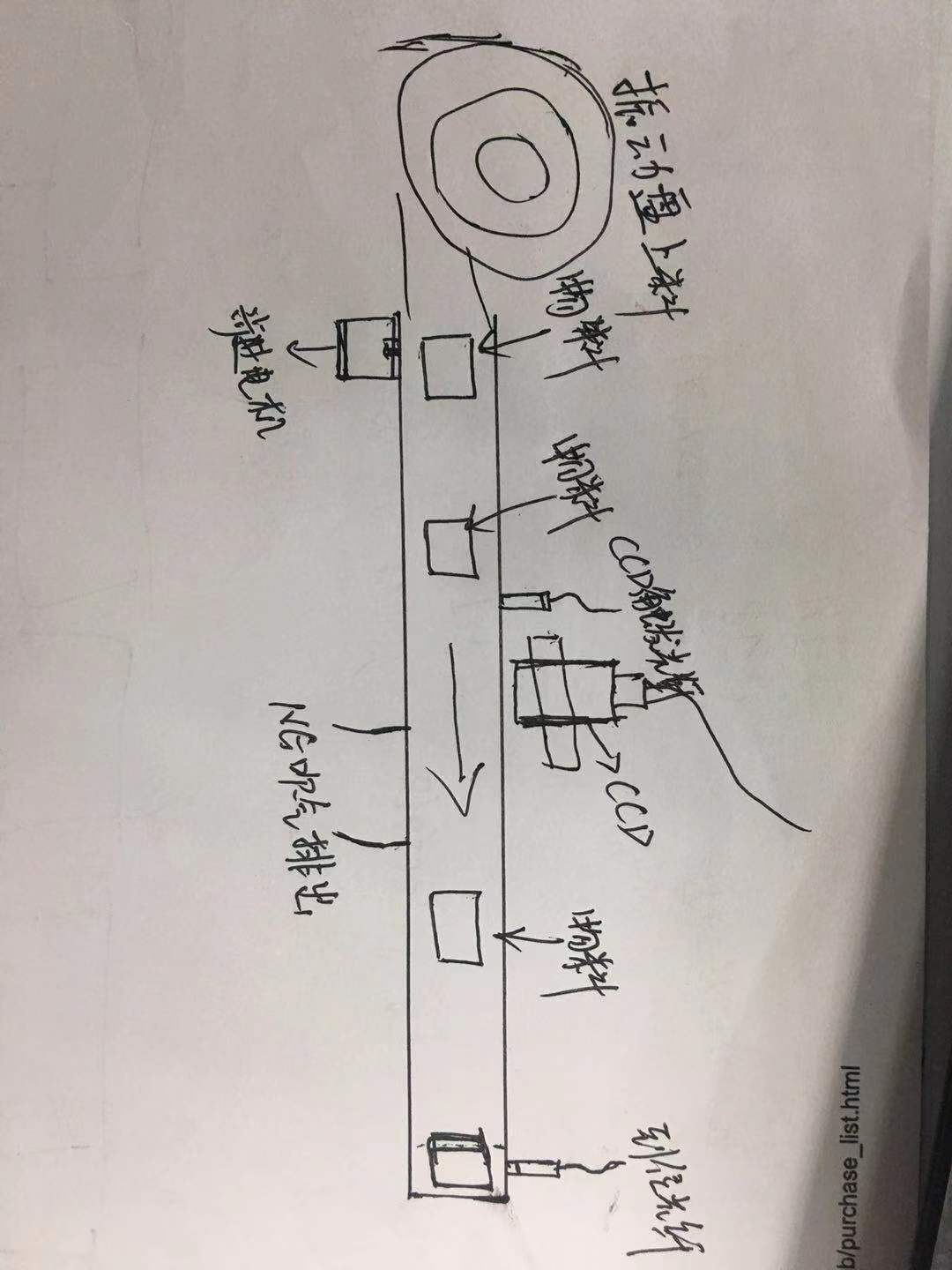 使用三菱FX3U PLC1:物料經振動盤送料到皮帶線上==>物料經過CCD觸發光纖時,CCD拍照。皮帶另一端檢測到物料到位時,伺服上下取料2:相機NG信號是皮帶線吹氣排除物料 3:相機反向信號,伺服上下取料時R軸做180度方向選擇4:相機OK信號時,伺服上下取料時R軸不旋轉