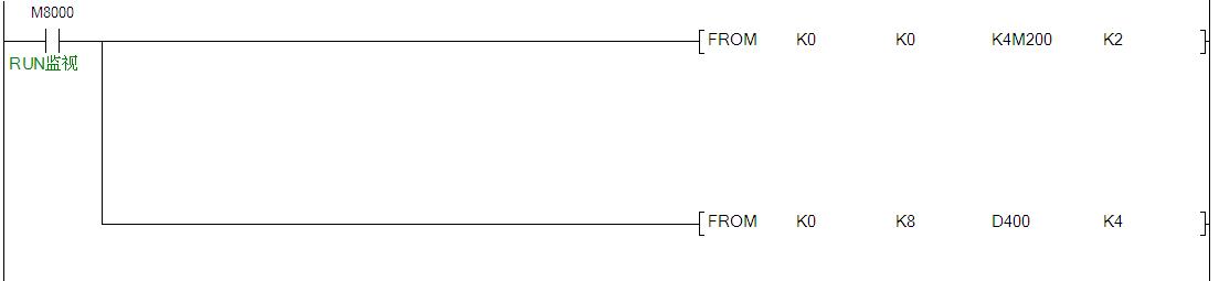 第二行是將特設模塊NO.0中的BFM8#、9#、10、11#中的數據讀出到D400-D403中嗎?