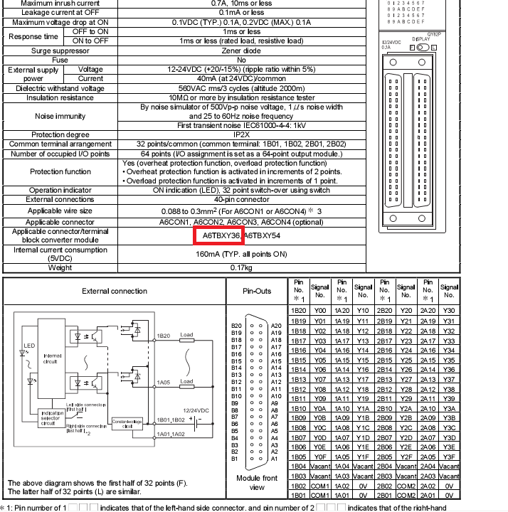 我要配連接器和端子排轉換模塊, 給三菱400打電話,三菱提供的型號是  A6TBXY36和 AC10TB  。    A6TBXY36接到輸出模塊上 源型和漏型 輸出 都是支持的嗎?