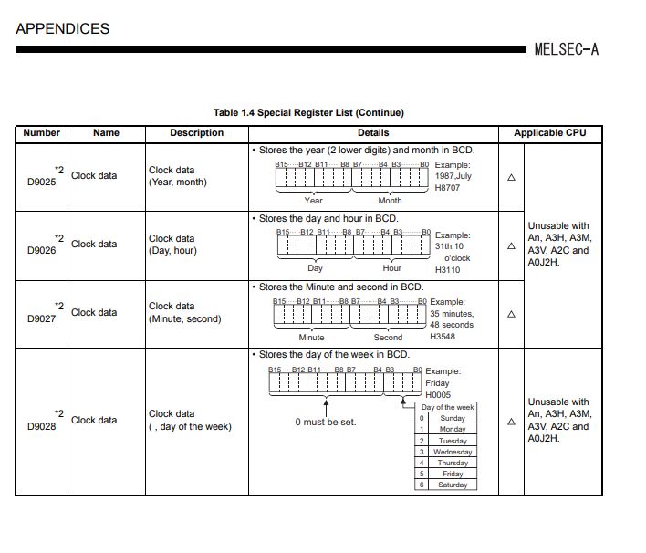 請教一個問題:三菱A系列PLC的年月日存儲在哪里?我需要調用一下。