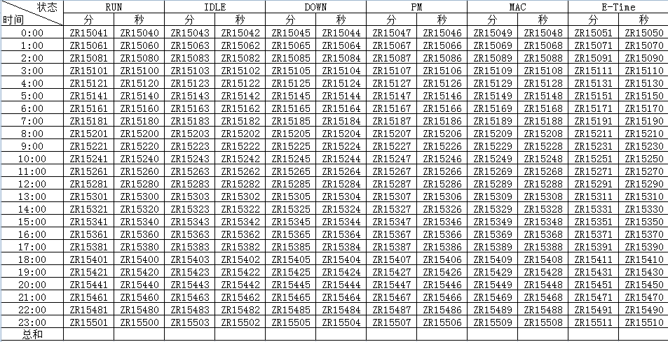 如附件圖片所示,想要求得每個狀態(tài)的時間總和,比如24小時RUN狀態(tài)的時間總和,該如何編寫?