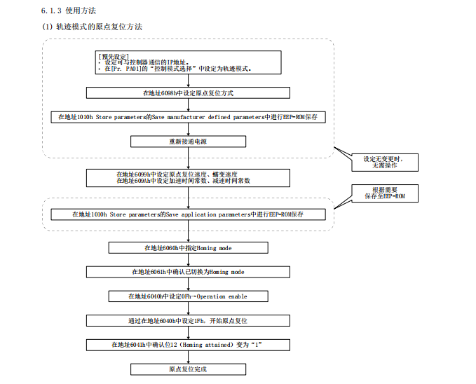 情況:我使用的是JE-C,ccinke basic 通訊控制伺服的,正反轉沒問題,但是原點復歸不了,給6040地址里寫入1F寫不進去,不知道為什么,通過強制也是不行,強制給0,給800F,0F都沒問題,就是給不了原點復歸的控制指令1F,關于原點回歸參數設置的是默認的,DOG型,Z相基準,麻煩哪位使用過JE-C的解答下,在線等