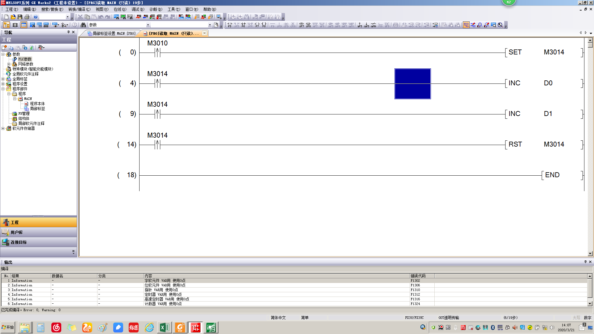 引用引用樓主勤工儉學(xué)于2020-03-21 14:18發(fā)表的 軟元件M上升沿不起作用的問(wèn)題,好困惑。 :[attachment=241851]求問(wèn)大神。 M3014置位后,只有第一個(gè)M3014的上升沿是起作用的。最后兩個(gè)M3014的上升沿都沒(méi)有其作用。這是為什么呢?