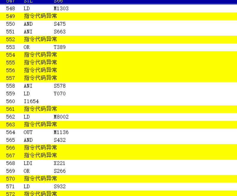 三菱FX2N程序上傳是顯示黃色,并且程序不全