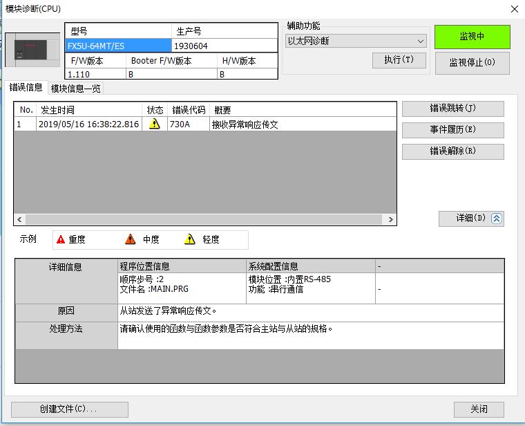 PLC用modbus專用指令ADPRW ,示例是讀2B01H(反饋脈沖)的值,觸發通訊時提示伺服響應的報文異常。