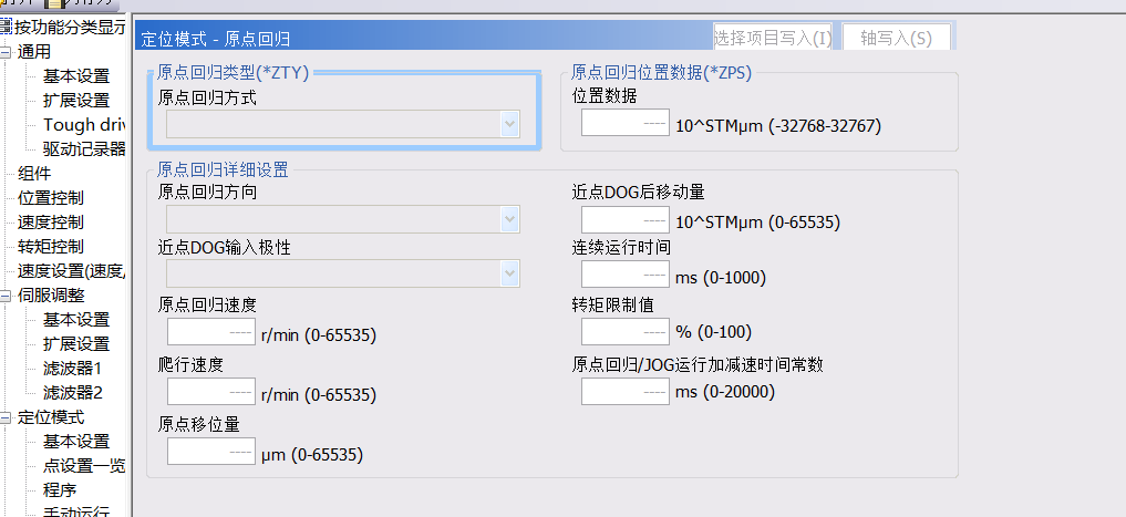 需將PA19改成可以設置PT參數,讀取驅動器參數后可設置原點回歸