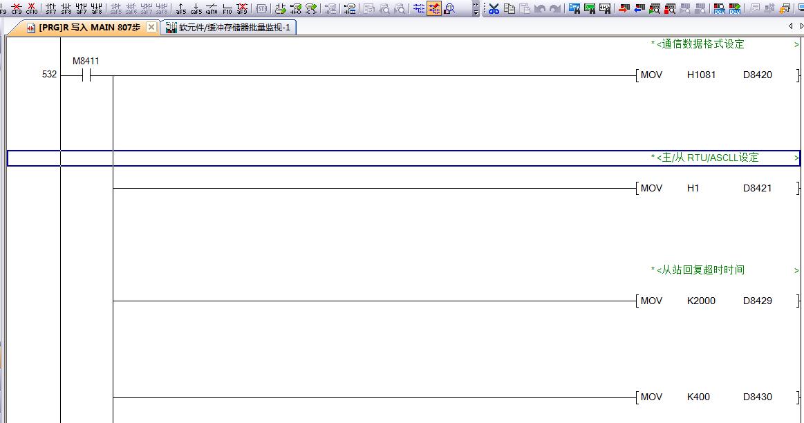 現在用FX3U做了系統,擴展了一個FX-422-BD的口用來連接威綸觸摸屏,編程口連接一個物聯通訊模塊,一個485APD-MB模塊用來和耀華的C801做485通訊。
