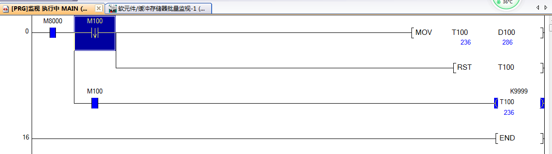 m100定位計時,下降沿將計時器傳給D100,得到周期時間。