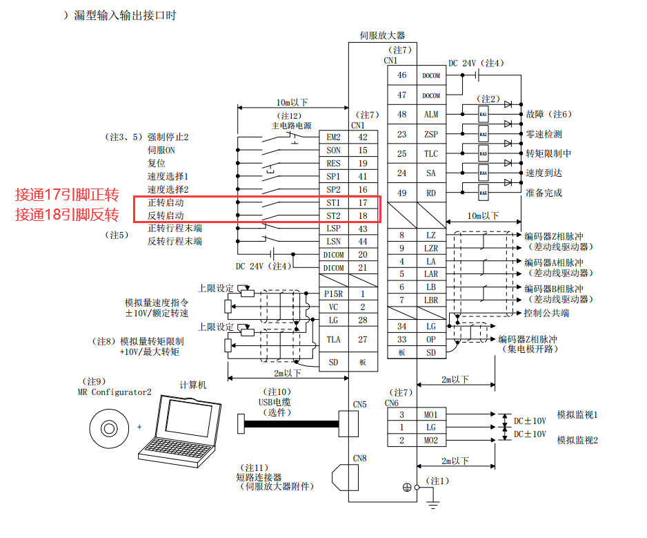 請問三菱MR-J4-A在速度模式下更改旋轉方向要怎樣設置,今天設置了幾個參數都不能改變旋轉方向,原來PD07(CN1-17管腳)參數設置是4的(PC)后來更改為7(ST1)或8(ST2)都不行,請問還有需要更改其他參數嗎