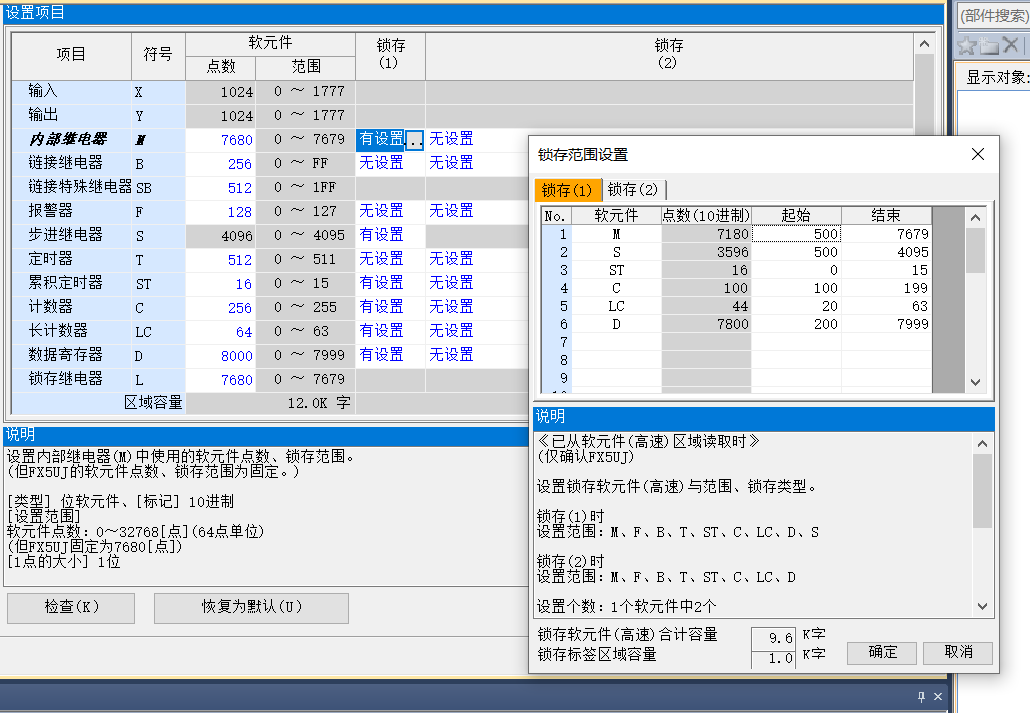默認(rèn)鎖存1中的D200-D799;C100-C199;M500-M7679
