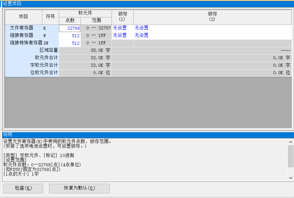 電池只是用于保持時鐘;文件寄存器R、鏈接寄存器W、鏈接特殊寄存器SW。