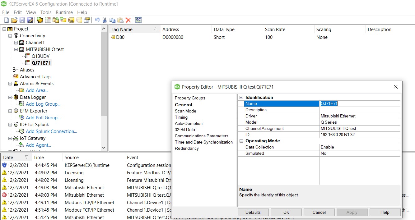 公司需要連MES,裝了一個(gè)QJ71E71-100的模塊,想通過(guò)MC協(xié)議和OPC軟件KEPWARE通訊,搞了好久都通訊不上,請(qǐng)大神指點(diǎn)