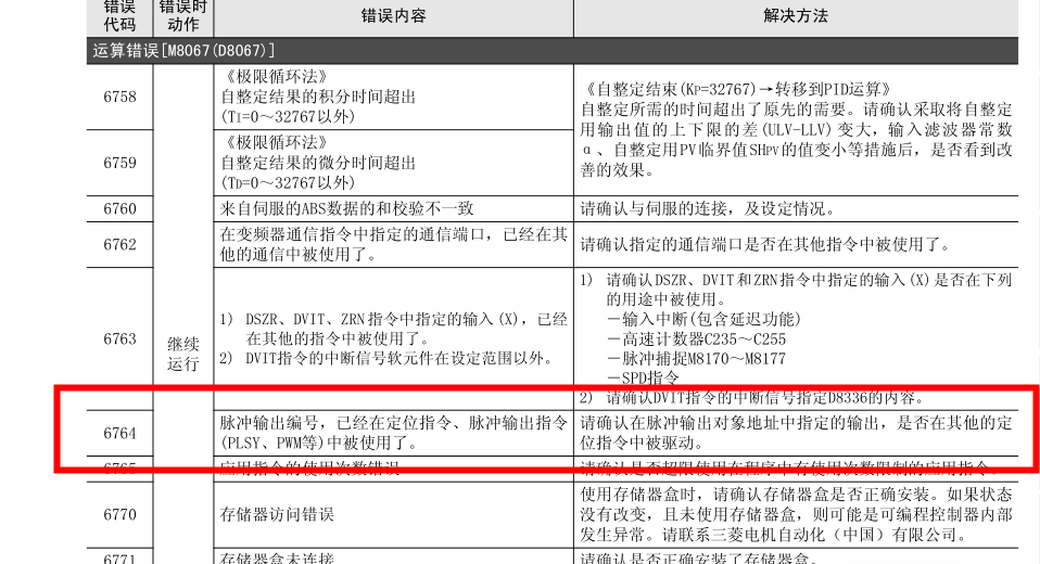 某條指令用Y0在發(fā)脈沖,或者脈沖發(fā)完了,沒斷開使能,另一條指令再使用Y0去發(fā)脈沖就會報此錯誤。