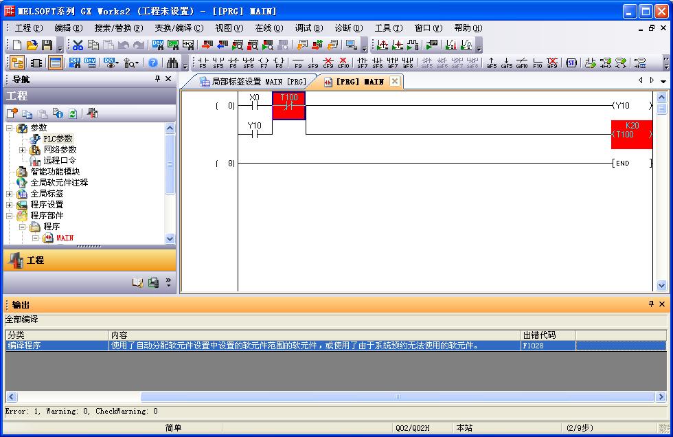 1    Error    MAIN    編譯程序    使用了自動分配軟元件設置中設置的軟元件范圍的軟元件,或使用了由于系統預約無法使用的軟元件。    F1028