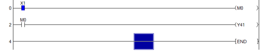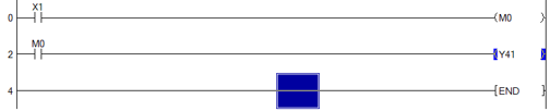 編了很簡單的一段小程序,理論上只要接通X1,那M0和Y41都會接通,仿真出來也確實如此。