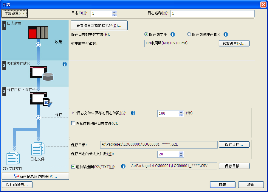 還可使用“任意時機創造日志文件”中用軟元件觸發的方式保存日志。