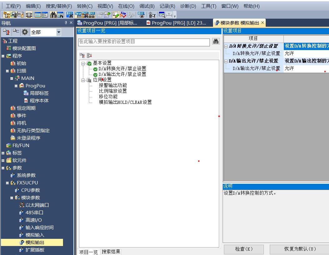 三菱PLC FX5U-80MR主體,模擬量沒有電壓輸出 但經過檢測硬件 程序 輸出都沒有問題 使用上去之后還有沒有輸出 請問在線的大佬們 還有什么原因?