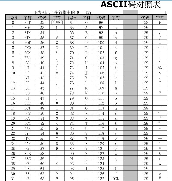 用法如圖所示,本人不知道,當做筆記記錄一下,通常可能用在BCD碼和ASCII碼地方比較多吧,所以附上ASCII碼表,知道的人不要噴哦,希望有幫助到不懂的人